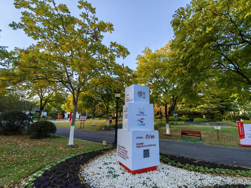 让党的创新理论成果随处可见、触手可及。走进青翠整洁的文明实践园,党的二十大主题、中国式现代化、非凡十年等颇具设计感的学习体验项目渐次映入眼帘。在这里,可以直观感受习近平新时代中国特色社会主义思想的科学体系、主要内容,“非凡十年”的伟大成就、伟大变革,中国式现代化的中国特色、本质要求、重大原则等,若觉不够解渴,可随手扫描二维码观看视频、阅读文章。“科教兴国”魔方墙,用72块立体魔方,多侧面展示天眼、奋进者号、北斗等大国重器,致敬袁隆平、孙家栋、屠呦呦等功勋科学家为国家科技发展作出的重大贡献。“一带一路”线路示意图,展示着成员国家代表性建筑图片,让市民真切体会到“一带一路”穿越非洲、环连亚欧、延伸拉美的恢宏气势。