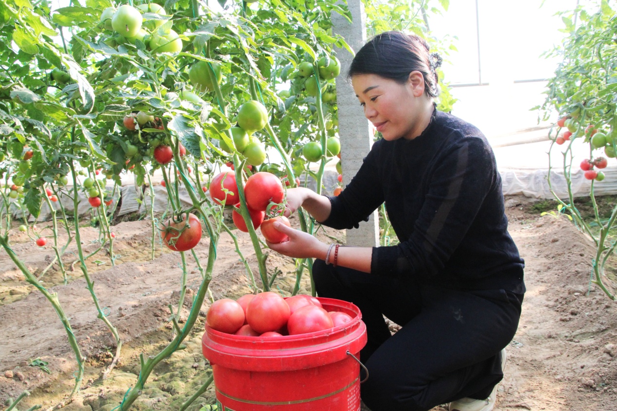 民权县绿洲街道办事处吴庄村村民在采摘番茄。王平萍 摄